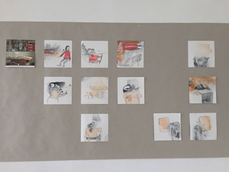2017 — Auszug aus 23teiliger Serie, Bleistift/Farbstift/Aquarell auf Papier, 15 x 15 cm