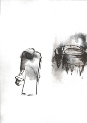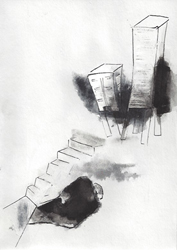 2015 — Tuschezeichnung auf Decollage, 26,5 x 18,5 cm